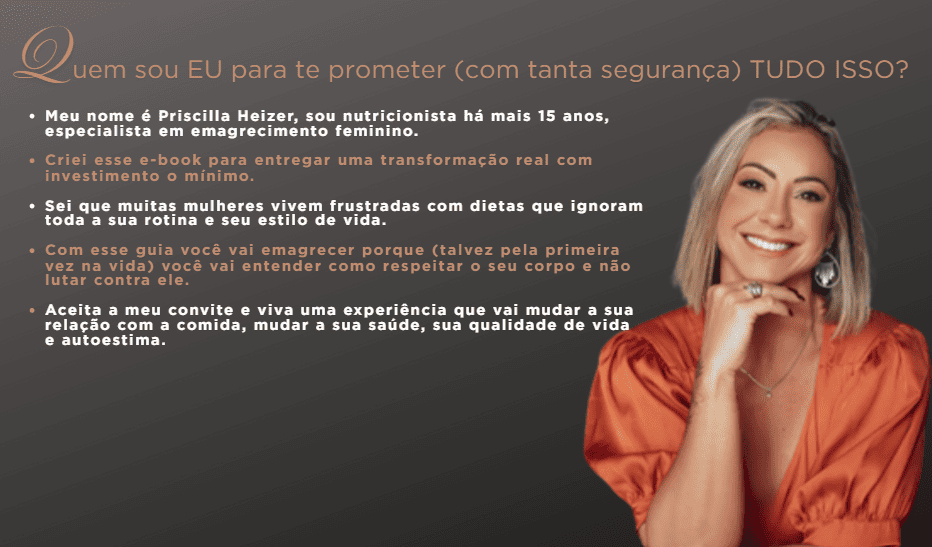 Ao seguir as práticas do e-Book, você verá que é completamente possível emagrecer com liberdade e sem dietas rígidas, respeitando seu corpo e sua individualidade.